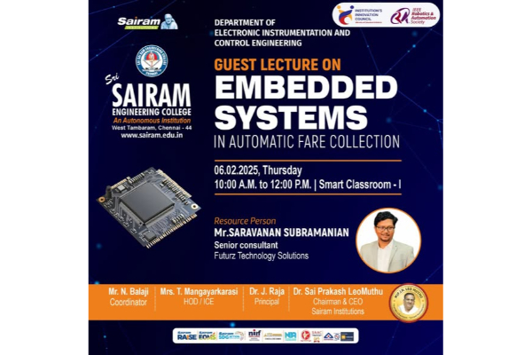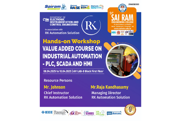 Established in the year 1998, the department of instrumentation and control engineering, today has more than 120 students. The department is accredited by the National board of accreditation and is backed by highly qualified faculty and supporting staff. The department has an excellent academic record and has produced 9 university Gold medals both under Madras university and Anna University. Has also produced a total of 84 university ranks including the gold medals .The department has bagged the FIRST RANK among the colleges offering ICE course in Tamilnadu based on the results of the examination held from 2008 onwards and thereafter.