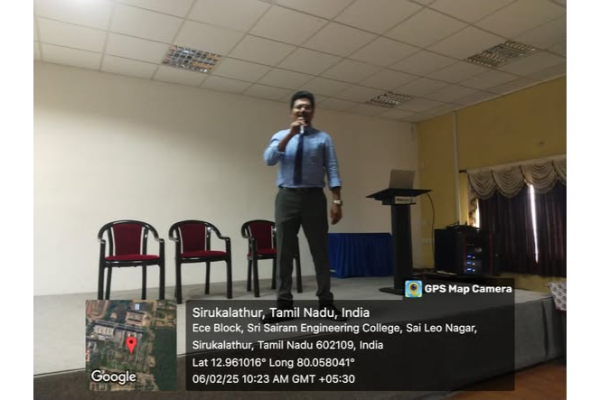 The Department of EICE organized a guest lecture on “Embedded systems in Automatic fare collection” on 6/2/25. Resource Person – Mr. Saravanan Subramanian, Senior Consultant at Futurz Technology Solutions.